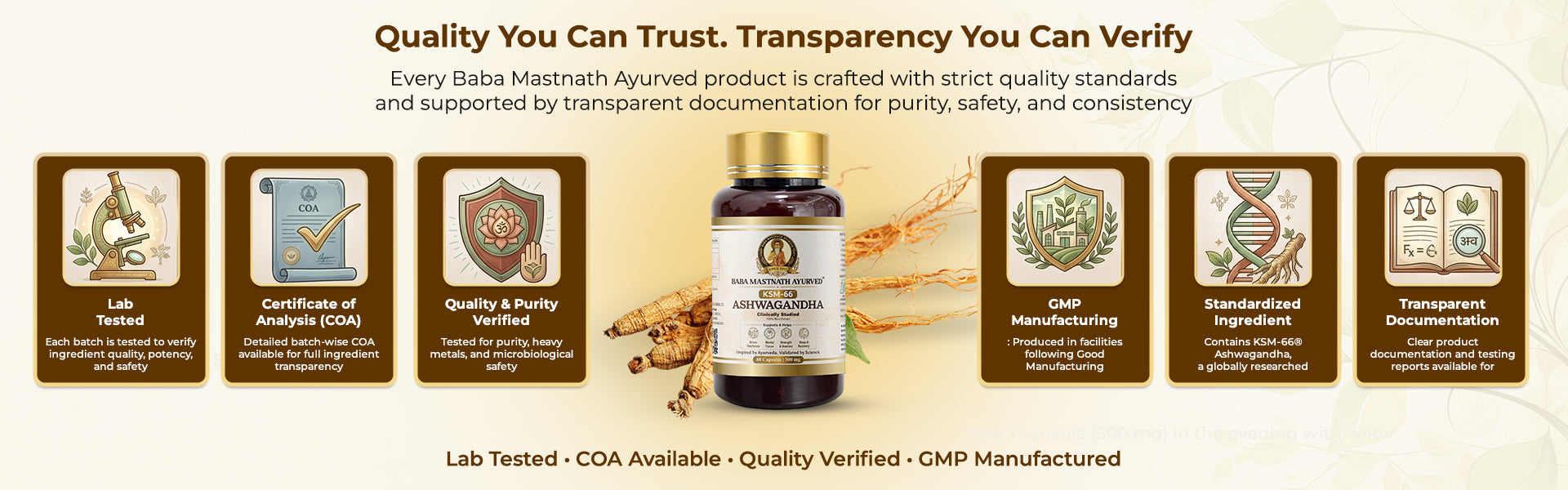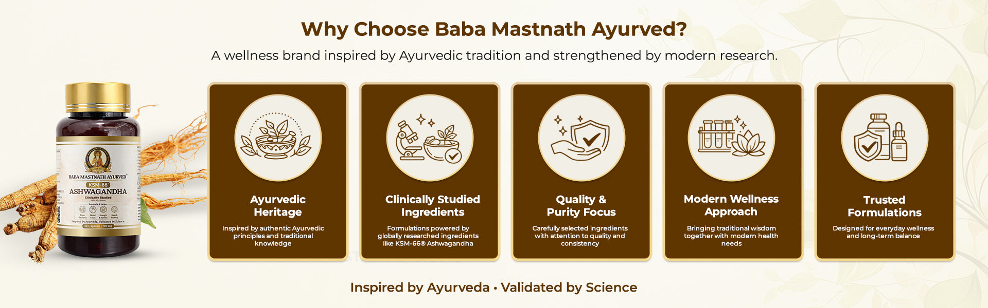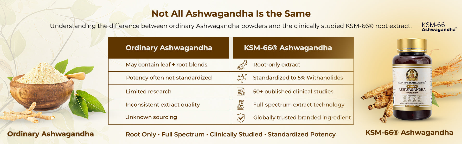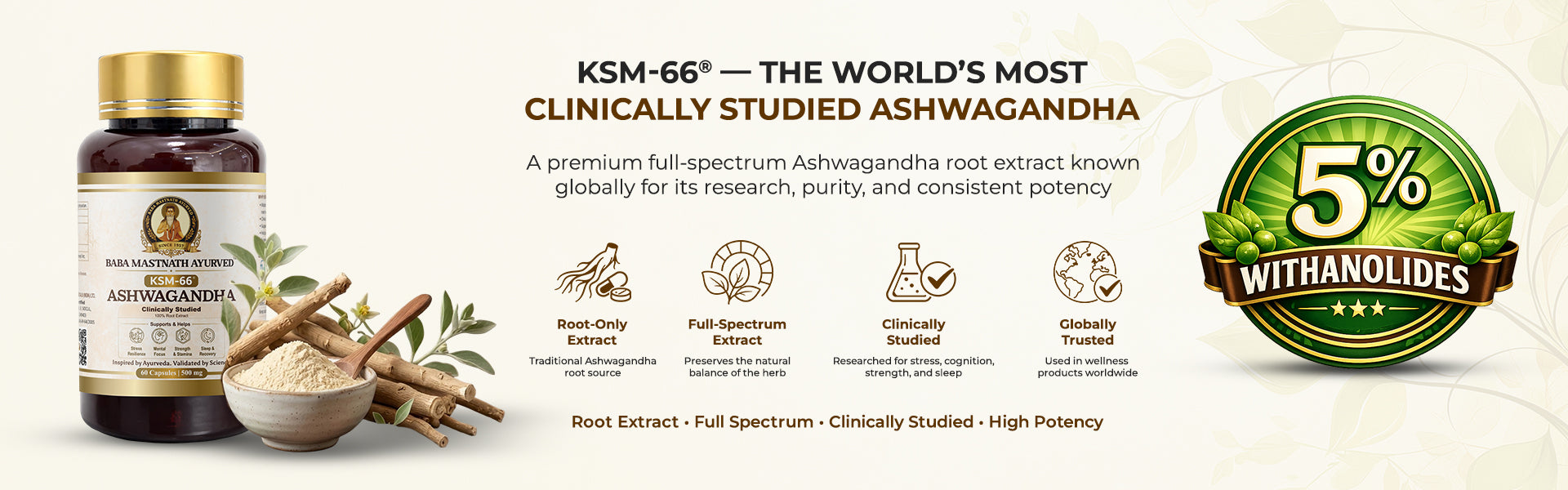 Baba Mastnath Ayurved KSM-66® Ashwagandha represents the convergence of classical Ayurvedic wisdom and contemporary clinical science. Formulated using the world’s most researched root-only Ashwagandha extract, this product delivers consistent adaptogenic support for modern lifestyles. Each capsule provides 500 mg of KSM-66®, a full-spectrum extract standardized to contain more than 5% withanolides, ensuring reliable potency, bioavailability, and real-world efficacy. Designed for individuals facing chronic stress, mental fatigue, physical exhaustion, or demanding routines, this formulation supports the body’s natural stress response without reliance on stimulants or sedatives. Suitable for both men and women seeking long-term balance rather than short-term stimulation.