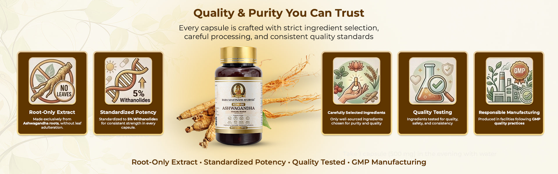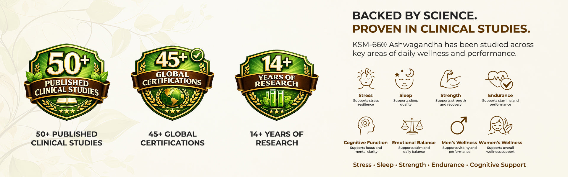 • Uses KSM-66®, a proprietary, globally recognized Ashwagandha extract